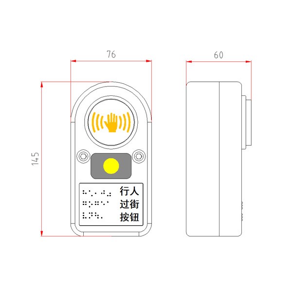 ? 帶“行人過街按鈕”盲文提示,方便盲人過街請(qǐng)求提示,體現(xiàn)對(duì)殘障人士的關(guān)懷;