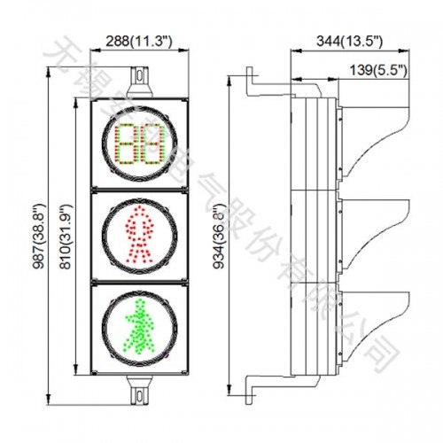 圖案采用進口高亮Φ5 LED勾勒成形,“88”圖案采用紅綠雙色復合形式,綠色人行燈采用動態(tài)行走圖案設計,光學配光具有視角好、亮度均勻、色譜標準、功耗低、壽命長等特點,在烈日及濃霧條件下,更顯其優(yōu)點。產品已獲得國家發(fā)明專利,專利名稱(一種交通信號燈倒計時顯示的控制方法),專利號ZL 2007100207806。