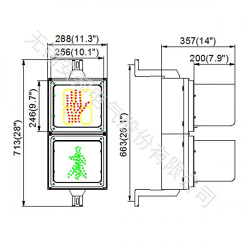 圖案采用進(jìn)口高亮Φ5 LED勾勒成形,“88”和紅色人手圖案采用紅黃雙色復(fù)合形式,綠色人行燈采用動(dòng)態(tài)行走圖案設(shè)計(jì),光學(xué)配光具有視角好、亮度均勻、色譜標(biāo)準(zhǔn)、功耗低、壽命長(zhǎng)等特點(diǎn),在烈日及濃霧條件下,更顯其優(yōu)點(diǎn)。